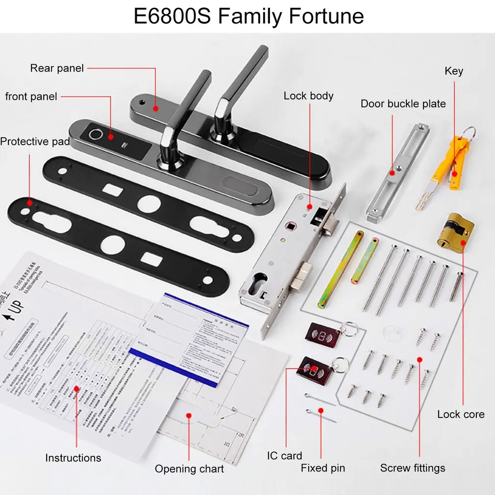 E6800S Digital Biometric Fingerprint Lock Keyless Smart Door Lock Fingerprint+Password+RFID Card+Ke